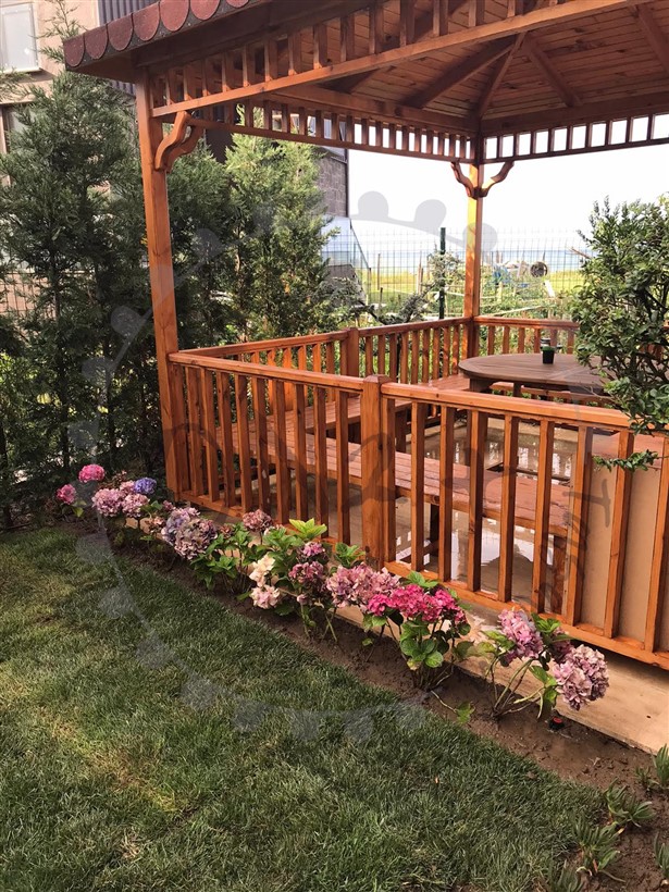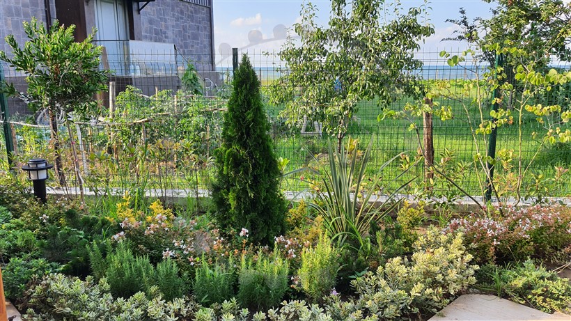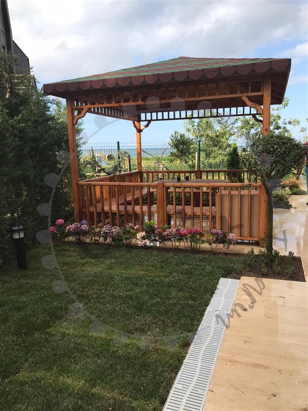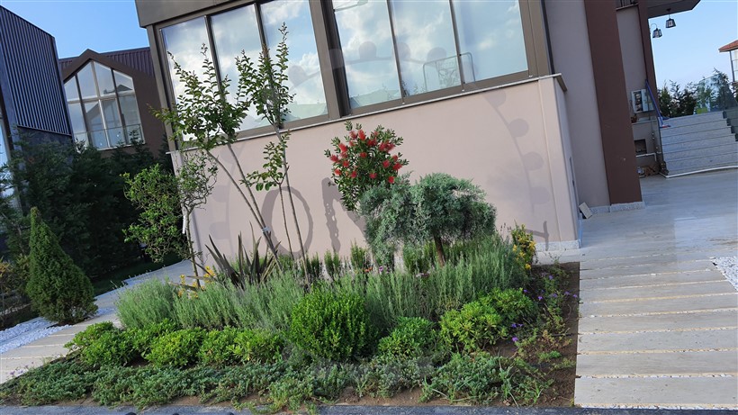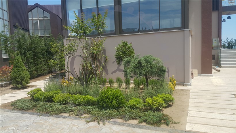 Ordu'da yer alan bu şirin villa bahçesi için renklendirme ve işlev kazandırmak için öncesinde projelendirme yapılarak, uygulama başlıkları belirlenmiştir. Görsellerde görünmeyen alt yapı çalışmaları ile işe başlanmış, drenaj, otomatik sulama ve elektrik hatları geçirildikten sonra, alana uygun toprak karışımı ile bahçe tesviye eidlmiştir. Tüm bu işlemlerden sonra "kare kameriye" uygulaması hayata geçirilmiş, ardından da bitkilendirme ve rulo çim serme işlemi gerçekleştirilmiştir.